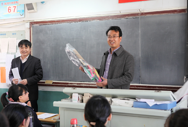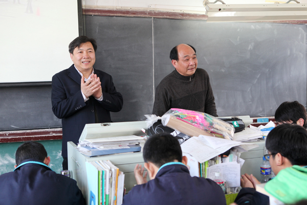 在2013年高考即将到来之际,我校学生奋力拼搏,不断进取。我校全体领导、教师也在努力为高三学生做好后勤保障工作。为了让高三学生锻炼好身体,能够劳逸结合,以饱满热情、最佳状态迎战高考,田烈校长带领部分班子成员和相关处室负责人走进高三学生教室,给同学们送去了多种体育器材,并鼓励他们拼搏进取,不负使命和誓言,努力创造2013年高考的新辉煌!