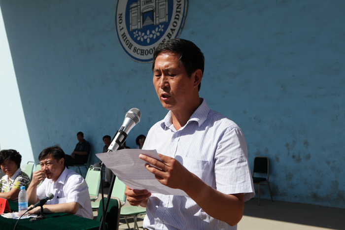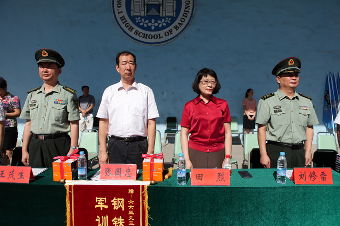 受训学生代表在发言中庄严承诺,他们将秉承军训中培养出的优良作风,传承学校的光荣传统,为成为祖国的擎天脊梁而奋斗!部队首长和教育局领导对同学们军训中不怕烈日酷暑,始终以“流血流汗不流泪、掉皮掉肉不掉队”的昂扬精神为支撑顽强拼搏予以肯定。学校王立锁副校长也对军训进行了总结,他说希望同学们能铭记军训中所学到的知识和做人的道理,高标准,严要求,踏踏实实地学习、生活和做人。主席台上领导们欣慰的笑脸、热烈的掌声,看台席上,家长们搜寻的目光、欣慰的眼神无一不表达着对这次军训的赞许!