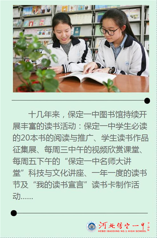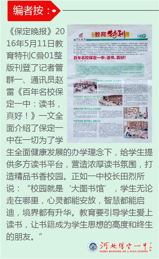 《保定晚报》报道百年名校保定一中:读书,真好!