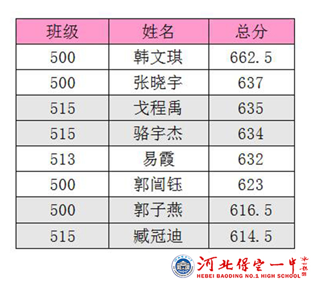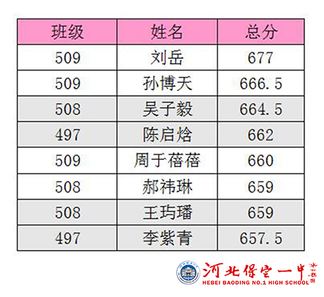 附:2017年保定市高考一模考试理科市区前十名保定一中学生名单